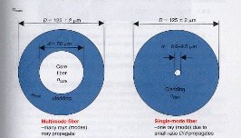 Παρακάτω βλέπουμε τα δύο αυτά είδη οπτικών ινών