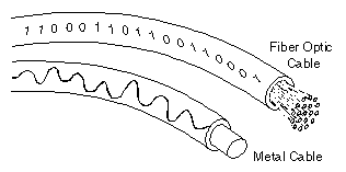 Στην παρακάτω φωτογραφία διακρίνεται μία οπτική ίνα και ένα παραδοσιακό καλώδιο: